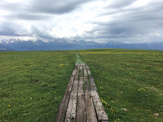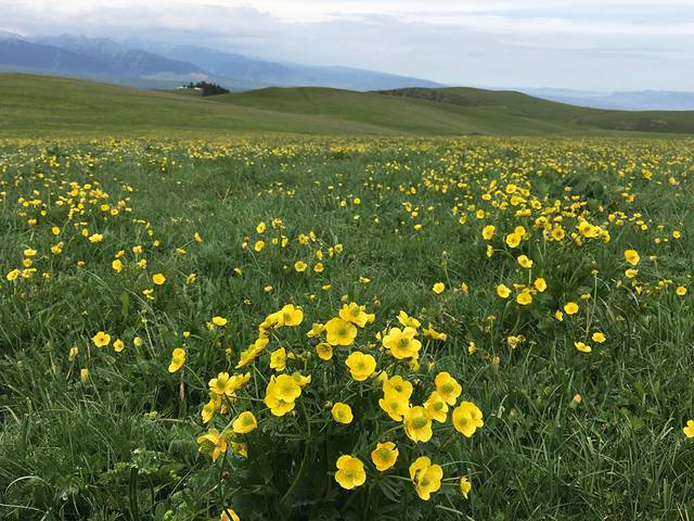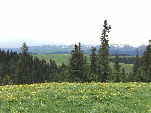 早饭后就直奔喀拉峻,阴天,但下午天气就转好了。喀拉峻大草原在开发初期,游人不是很多,风景宜人,片片花海,有雪山、原始森林、草原,算是此次旅行中最喜欢的一个了。沿途还能看到出洞嬉戏的旱獭,我朋友很是喜欢,想投食饼干,都一直未能如愿,旱獭都比较害羞,少走近就溜之大吉了。景区内不可以自驾,需要大城区建成。我们只买了大草原的门票,还有大峡谷可以去玩。在看完喀拉峻后,开车前往了新源县并住宿此处。