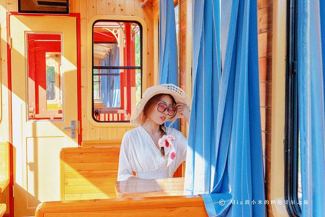 除了车窗外的景色,小火车本身也是一个亮点。车身是亮眼的大红色和明黄色,车内是复古的原木装饰,一个个天窗和四周的玻璃窗,让车厢内光线非常充足,拍照很美。