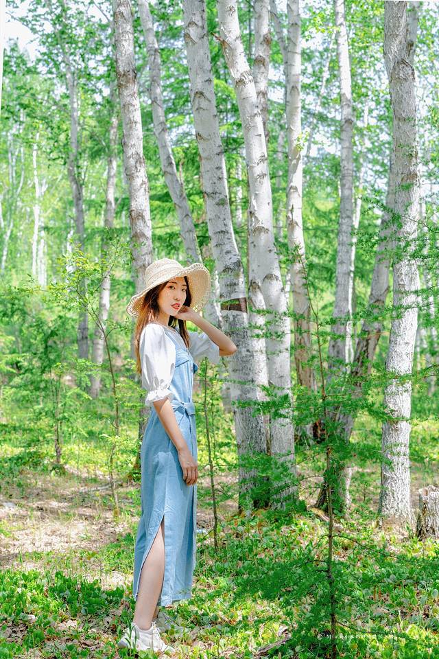 因为树木太高,对比下,人容易显矮,建议蹲下仰拍或者拍半身哟!