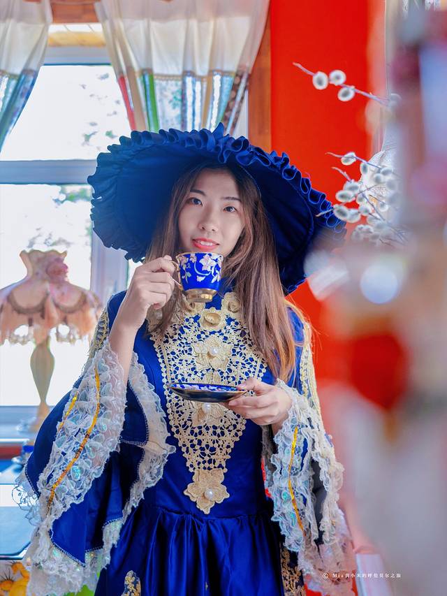 紧接着,我换上了一套华丽贵气的中世纪欧式宫廷风服饰,感觉自己像是油画里走出来的贵族少女。