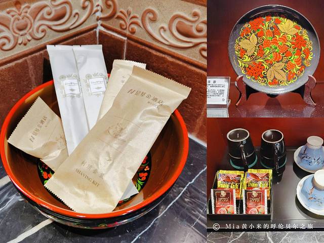 房间没有五星酒店的奢华,却有着一种百年风情的韵味。装载着洗浴用品的 俄罗斯 漆器、美味的 俄罗斯 糖果、复古的风扇吊灯、床头的老照片都彰显着这家酒店的独特气质。