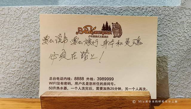 桌子上有张小卡片,里头写着一句话:“要么读书,要么旅行,身体和灵魂,必须在路上!”直戳文艺青年心窝,哈哈~