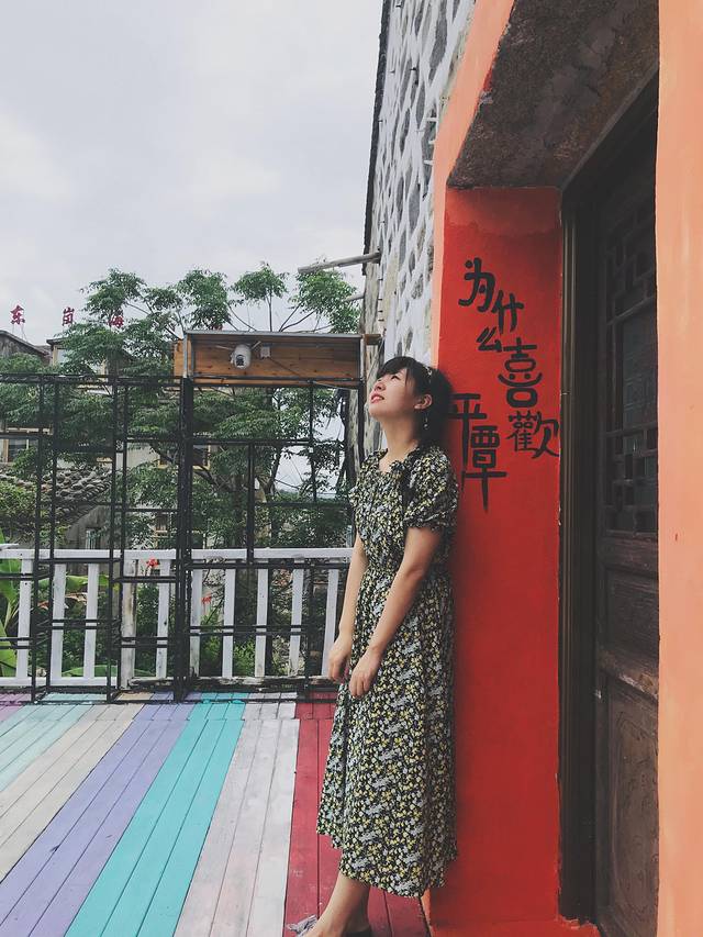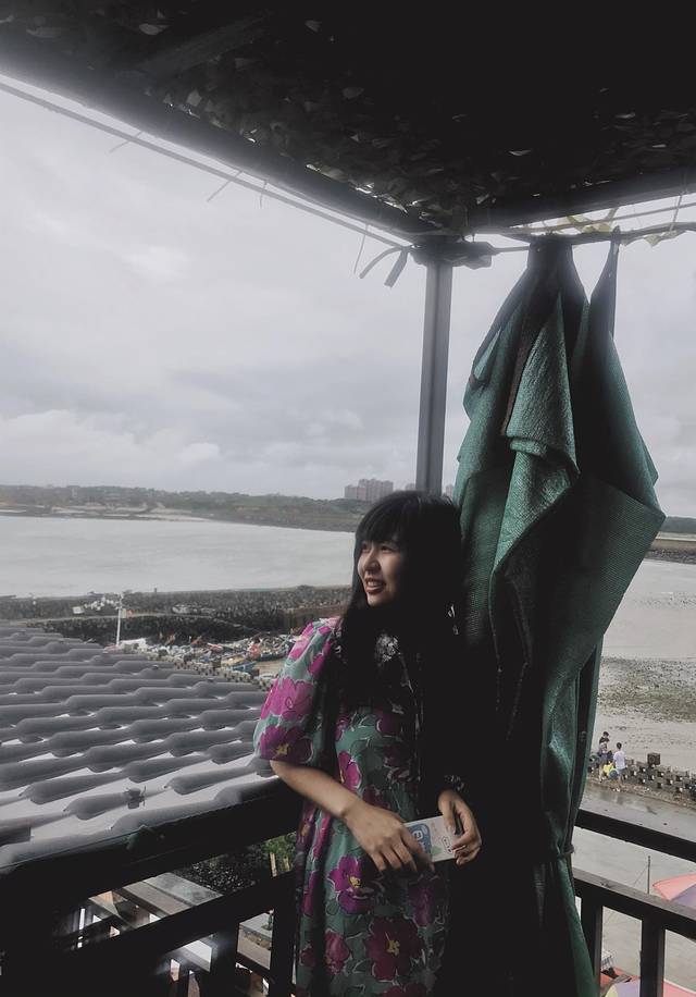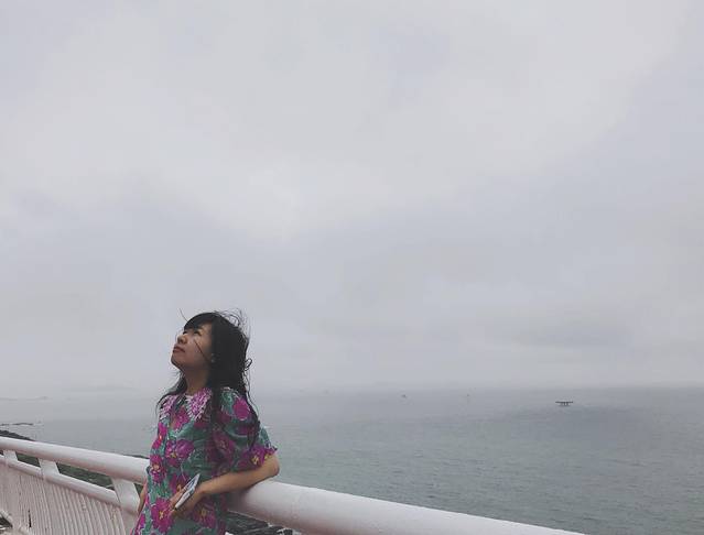 二楼这个平台真的非常适合拍照,木质的栏杆,加上今天灰色的天空,若隐若现的大海,超级有感觉。