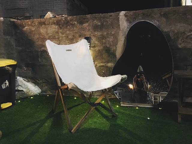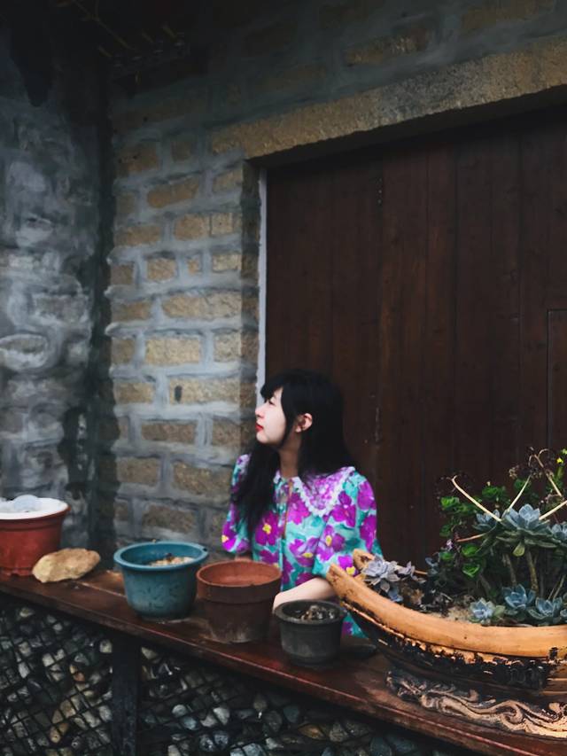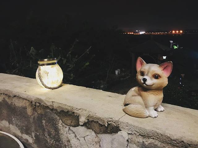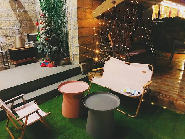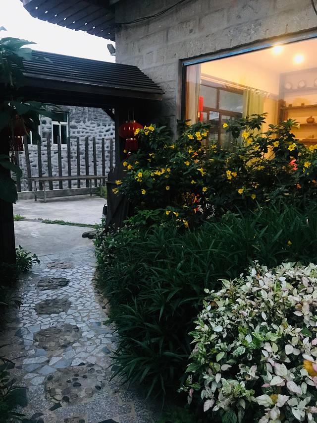 懒得跑回去拿无人机,于是我们俩就坐在这门口,想着拍几张美美的照片回去,结果黑乎乎的什么都看不到,哈哈。这家小店的院子特别舒服,天气好的时候可以在这里烧烤 。