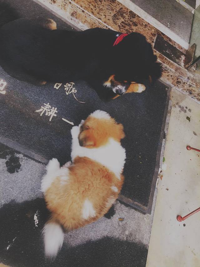 这只小可爱就这么懒洋洋的趴在门口,我走过去的时候,它慢悠悠的抬头瞅了我一眼,又恢复到了原来的状态,狗狗也有自己的心事吧。