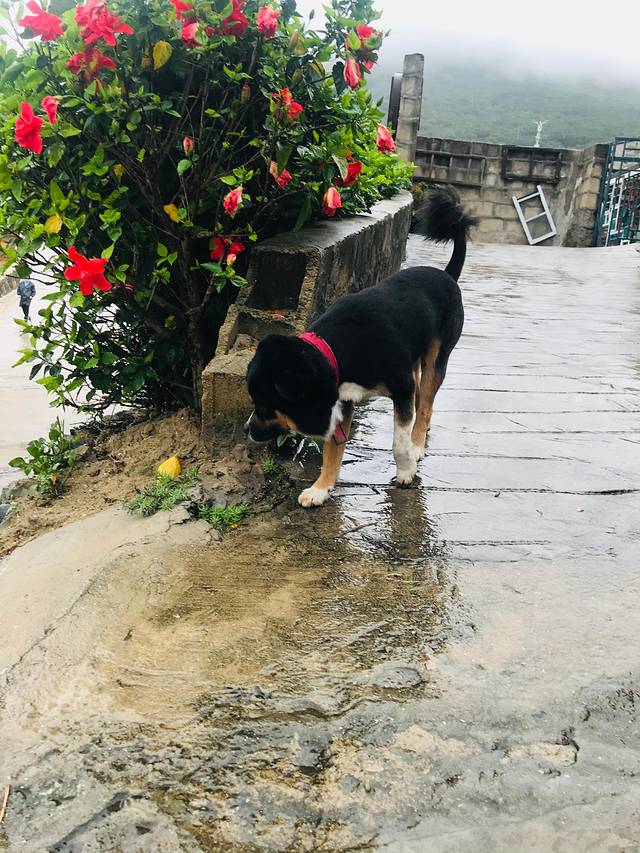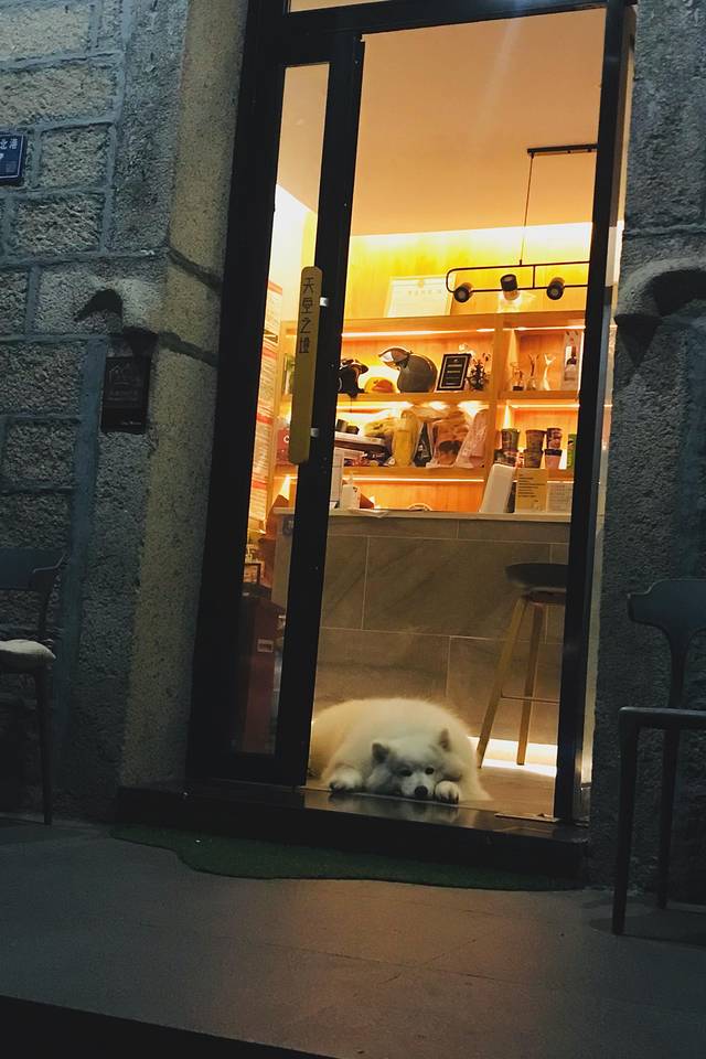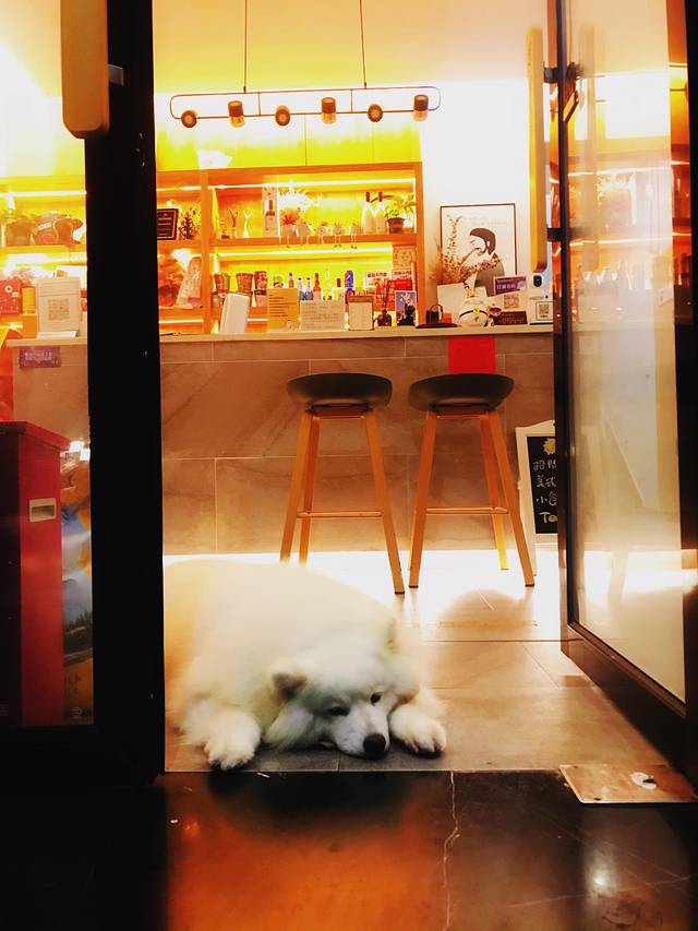 由于临时需要发送一个邮件,晚上我和花花顶着大风到了酒店前台,前台小哥哥真的特别好,直接把前台的电脑让给我们用。不知道什么时候,这只狗狗趴在了我脚边,当我们俩对视的时候,真的是一时没反应过来,吓了一跳,估计也把它吓着了,哈哈。