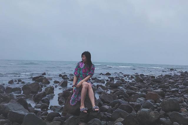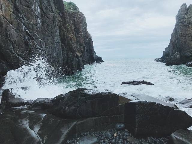 穿过一片黑色的石头(来这里最好穿运动鞋哦),来到岸边,海浪一次次的拍打着岸边的礁石,掀起一阵阵海浪,凉凉的海风迎面吹过来特别的舒服。