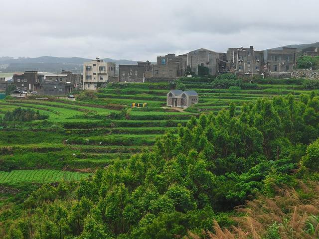 车子骑出去大概有几分钟,就被旁边的景色美到停了下来,从这里回头望,能看到整个北港村,层层的梯田包围着存在,好像海边的童话世界一样。