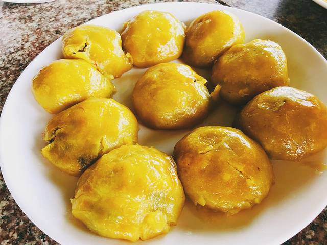 这个菜叫“时来运转”,当地的特色菜,吃起来有点像粘豆包的感觉,里面有海鲜、香菇、青菜什么的,特别的抗饿,这一个下去基本就八分饱了,哈哈。