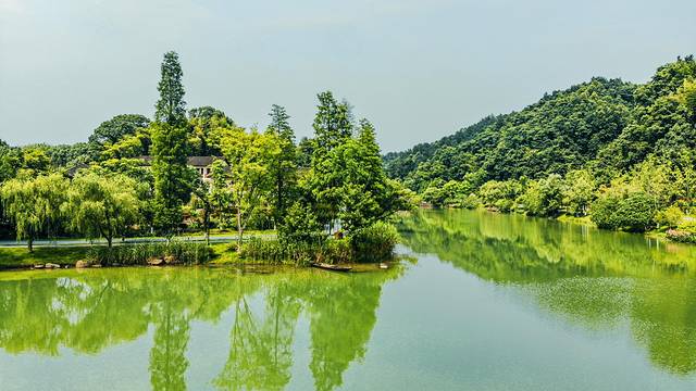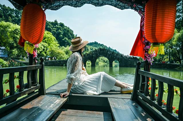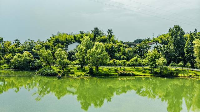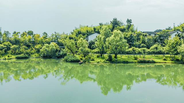 坐在游船上,慢悠悠地前行着,赏着两岸的景,无人声惊扰,时不时有飞鸟掠过水面,划出层层涟漪,纯净山水,让人心旷人怡。