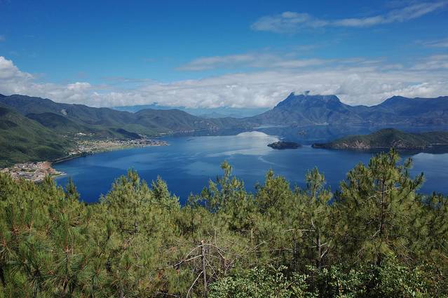 都是从高处观赏泸沽湖,相对可以看到全貌,但我觉得泸沽湖远观不如近赏,下面三个近景更加推荐。