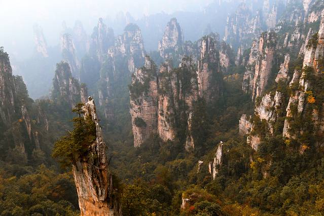 18. 张家界不像别的山,其实天太晴了就没有雾了,没有雾了,也就不是张家界了。很多景色都会混杂在一起没有层次,很混乱了。