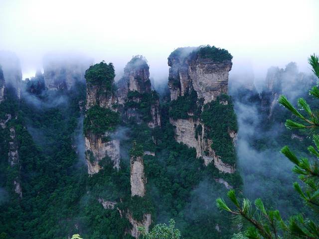 其间古树参天,藤蔓缠绕,青苔遍布,石笋、石芽举步皆是,处处如天成的盆景,被人誉为世界最美的空中花园和天界仙境。