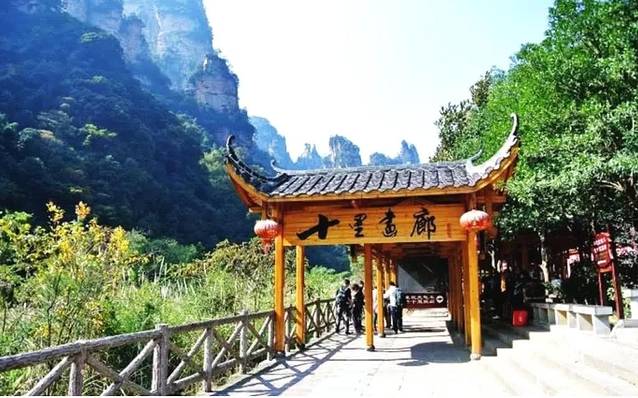 十里画廊长约五公里,两边林木葱茏,野花飘香;奇峰异石,千姿百态,像一幅幅巨大的山水画卷,并排悬挂在千仞绝壁之上,使秀美绝伦的自然奇观观溶进仙师画工的水墨丹青之中。