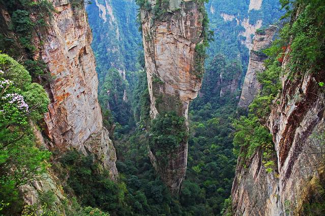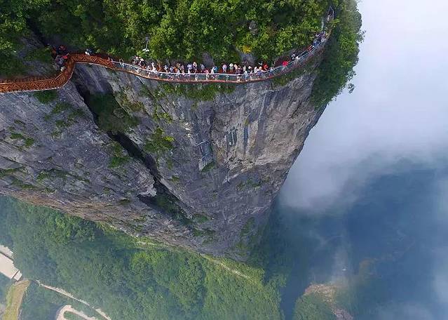 站在栈道上俯瞰群山,古人“会当凌绝顶,一览众山小”的感觉油然而生。由于天门山是国家森林公园,植被特别丰富,加上典型的喀斯特地貌,所以,在这条栈道上更能找到一种在乘坐直升机飞越热带雨林大峡谷的感觉,这平时只能在电影里看到的场景,在这里能让你身临其境。