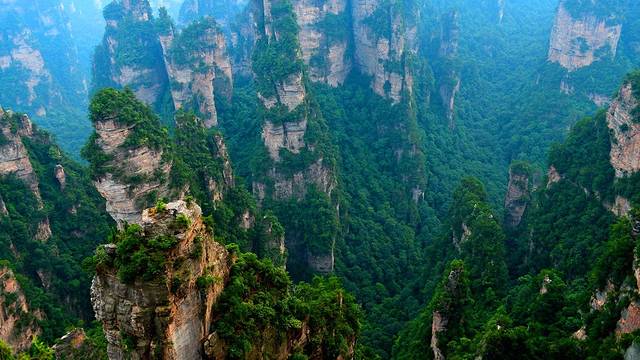 其间古树参天,藤蔓缠绕,青苔遍布,石笋、石芽举步皆是,处处如天成的盆景,被世人誉为世界最美的空中花园和天界仙境。
