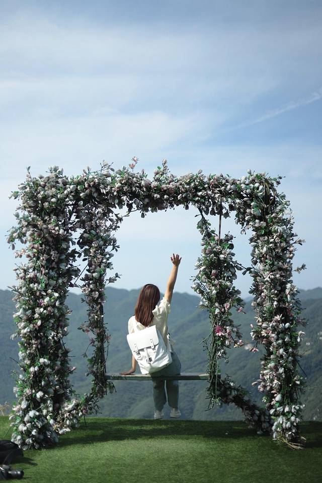 除了云上天梯外,云中牧场还设置了超出片的花环和秋天,拍照真的绝绝子!