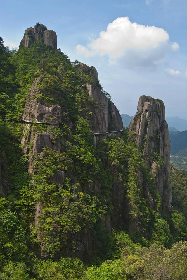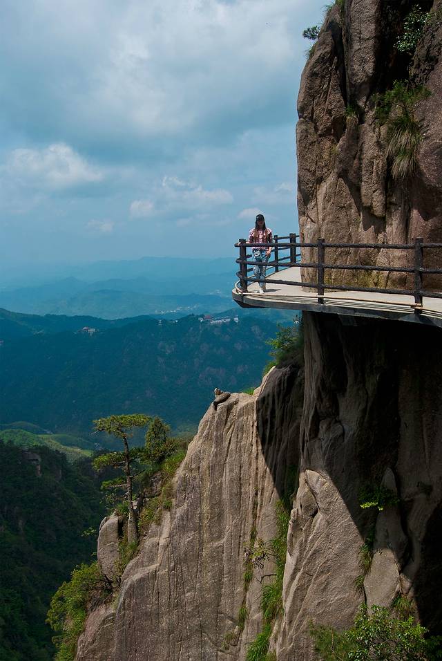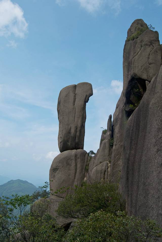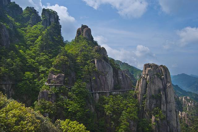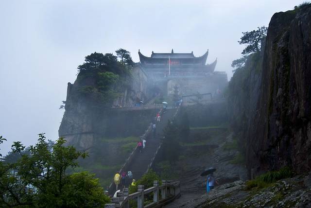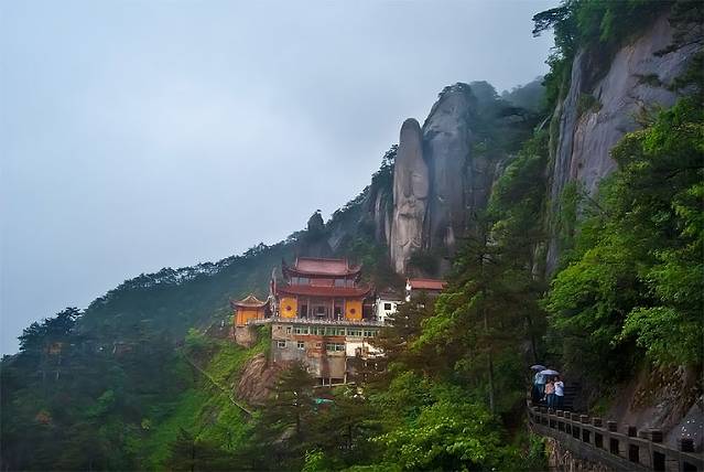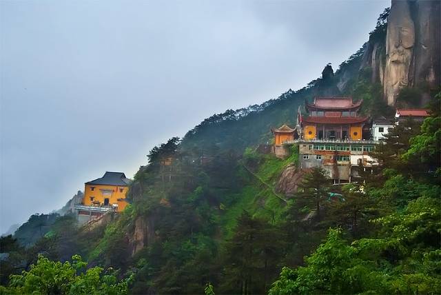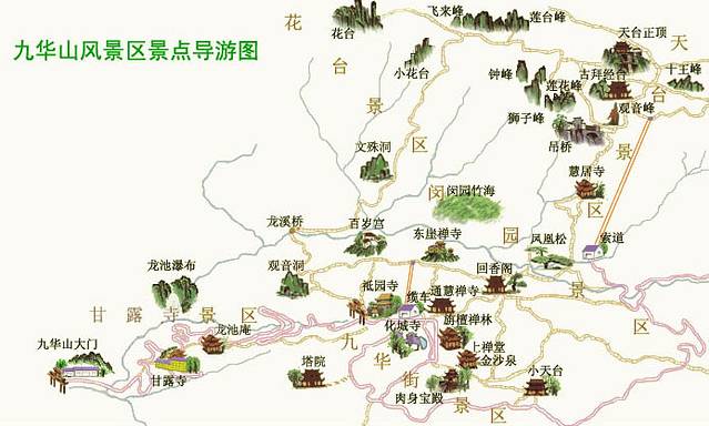 观风景:九华山属于花岗岩名山,奇峰峻岭、重峦叠嶂,风景优美。有一些险峻奇巧的山峰尚未开发,目前看风景最值得去的,是天台景区和花台景区。天台景区既有奇峰怪石,又有高山险寺,花台景区以自然景观取胜,有高空绝壁栈道。