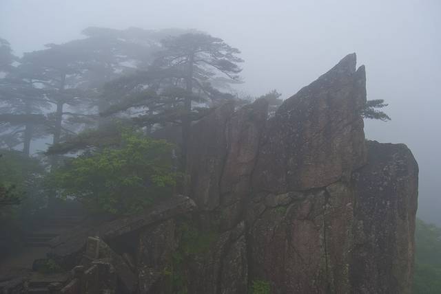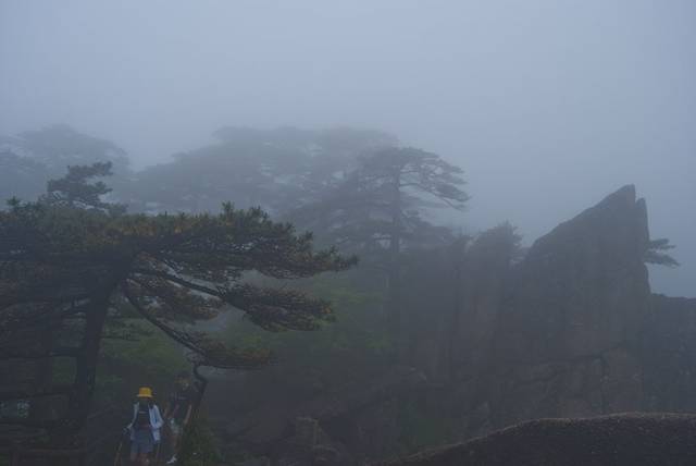 今天仍是大雾,9:00女儿沿鳌鱼峰-百步云梯一线下山,天都峰已关闭了两年,无缘相见了,所以她一路向下到迎客松结束,乘玉屏索道下山。今天的雾比昨天大了许多,几乎完全看不到风光了,这一路下山没赏到什么风景,很是遗憾。