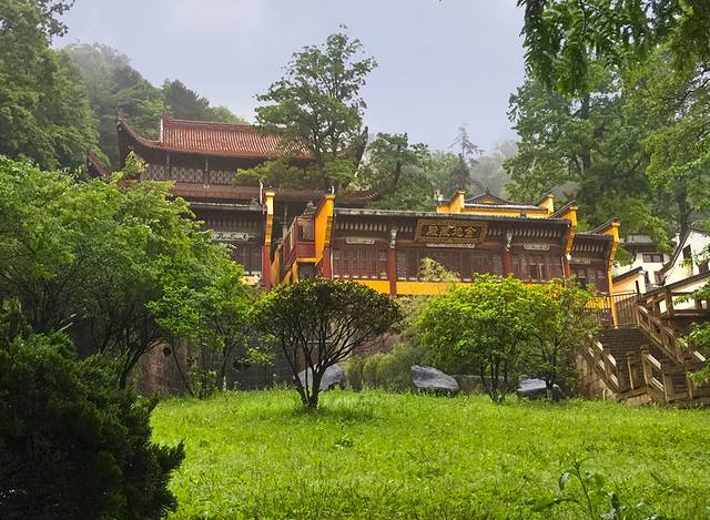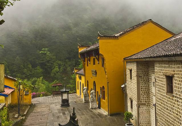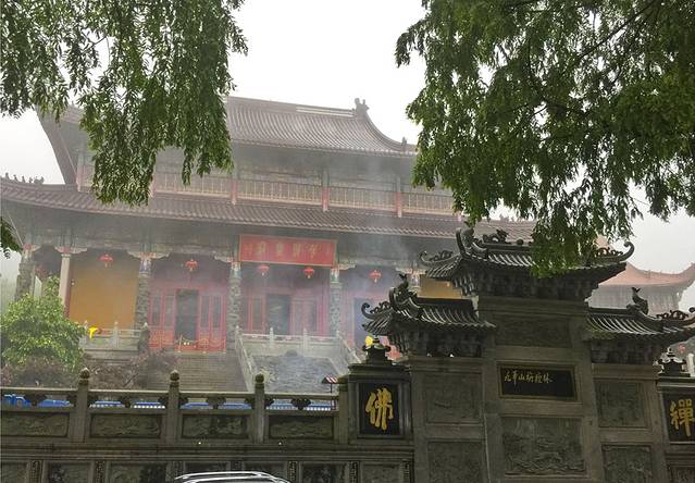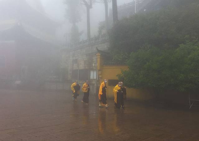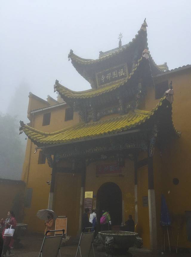 最后去了祗园禅寺,雾更大了。九华山“四大丛林”之一,九华山最早的宫殿式寺庙。初建于十六世纪中期、明代嘉靖年间,清代多次重修和增建。祗园本来是印度佛教圣地,相传释迦牟尼在祗园宣扬佛教二十馀年,祗园寺就是取这个故事而得名。祗园寺通道刻满金钱,以象征释迦圣迹。