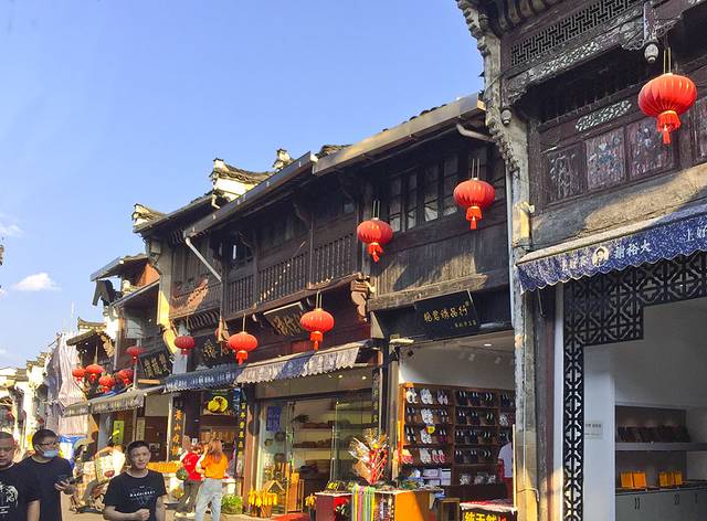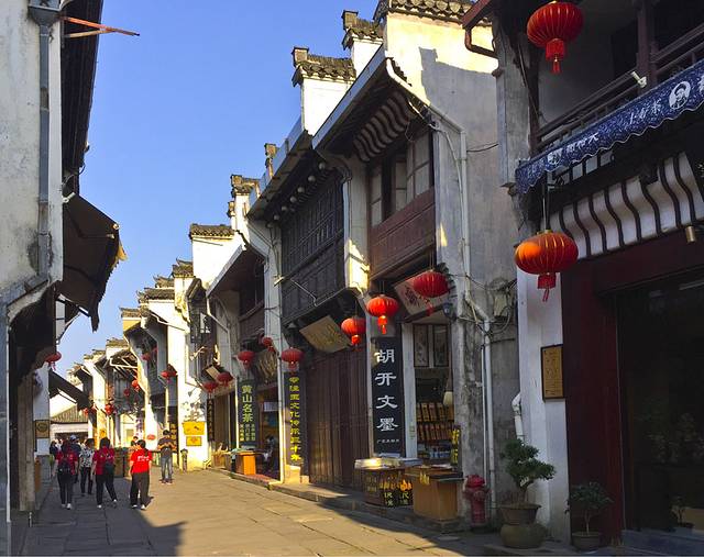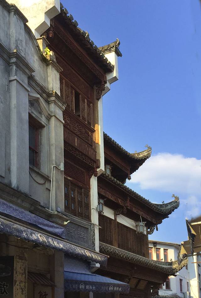 休息一下4:00去了屯溪老街,感觉老街也比十年前扩大了不少,街道两边的古老房屋还是很有感觉的,一层店铺,向上看许多老建筑的面貌没变,仍然保持旧时徽州风格。
