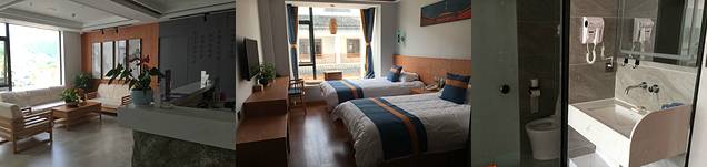 2个小时后到达黄山景区换乘中心,入住喆啡酒店,距离换乘中心汽车站300米左右,房间面积适中,但卫浴区与睡眠区的设计很到位,是难得一见的舒适房间。