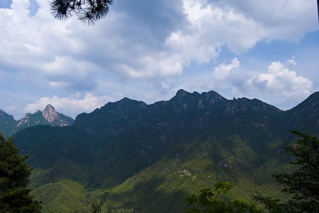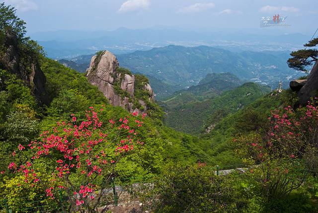 花台景区是九华山风景区观景的最佳地点,时值5月高山杜鹃点缀,蓝天白云,山峦起伏。