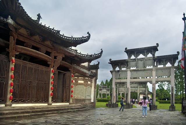 来到棠樾牌坊群,为明清时期古徽州建筑艺术的代表作。这七连座牌坊群,不仅体现了徽文化程朱理学"忠、孝、节、义"伦理道德的概貌,也包括了内涵极为丰富的"以人为本"的人文历史,同时亦是徽商纵横商界三百余年的重要见证。每个牌坊后都隐藏着一段历史,都有一个情感交织的动人故事。乾隆皇帝下江南的时候,曾褒奖牌坊的主人鲍氏家族,称其为"慈孝天下无双里,衮绣江南第一乡"。想当年门票100,同伴们都感觉村民的高价无理,便放弃了游览,哈哈。今天在国家统一管理下门票65了,推迟了十年才来欣赏呀。景区内除了7个不同主题,造型差别不大的牌坊外,还有两个祠堂也是不错。穿过一个个牌坊,在小路上回望,裳樾牌坊群宛如一条嵌在稻田中的走廊,有穿梭时空隧道的感觉。