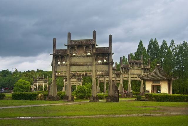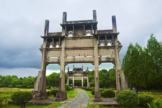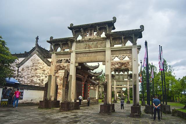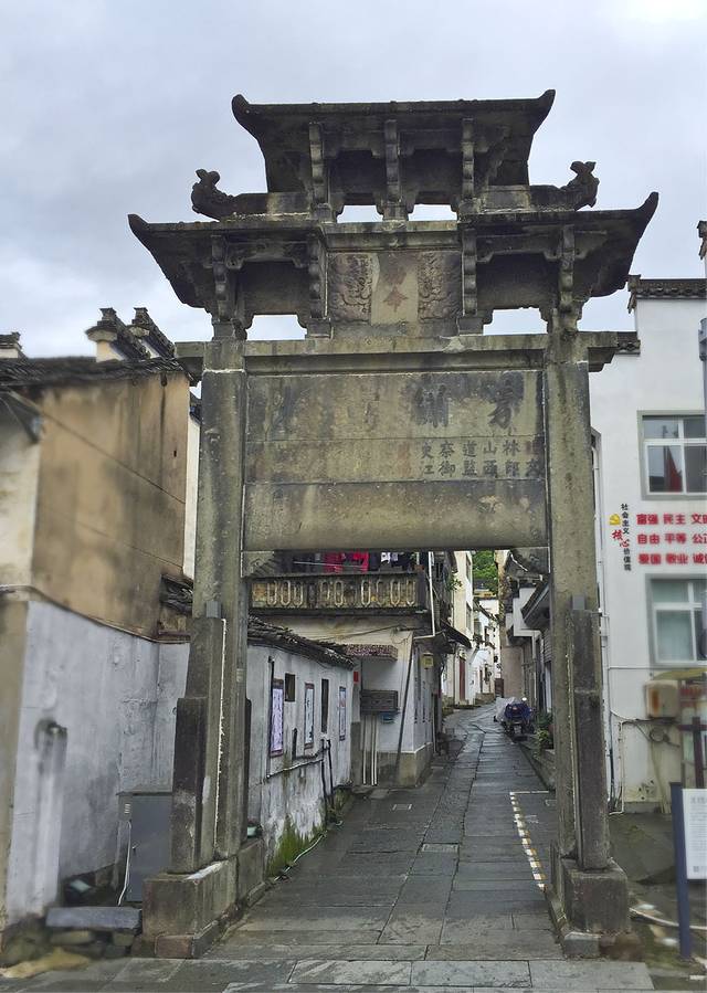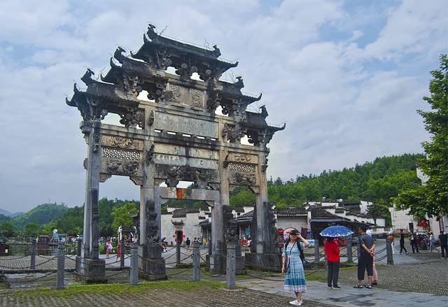 著名的许国石坊,又名大学士坊, 许国石坊是许氏衣锦还乡时在家乡歙县立此坊。许国石坊,其不是通常的四柱而是八柱,形成四面围合,中国仅此一例牌坊是封建社会为旌表功勋、科第、德政以及忠孝节义所立的建筑,是最能诠释中国古代历史文化的载体。