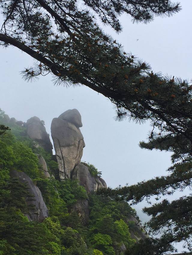 早7:00多起床,早餐后退房,将不用的东西存在前台,到换乘中心买门票,乘交通车到达云谷索道站,上山后女儿去石笋虹-蘑菇亭-始信峰-梦笔生花-清凉台-猴子观海-狮子峰等一线景点,我则直接背行李去白鹅山庄入住。