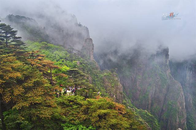 饭后出发排云亭,准备下西海大峡谷。今天山上的雾也是较大,每到一个景点都要等一会儿,才可见到美艳的云雾缭绕的景色。