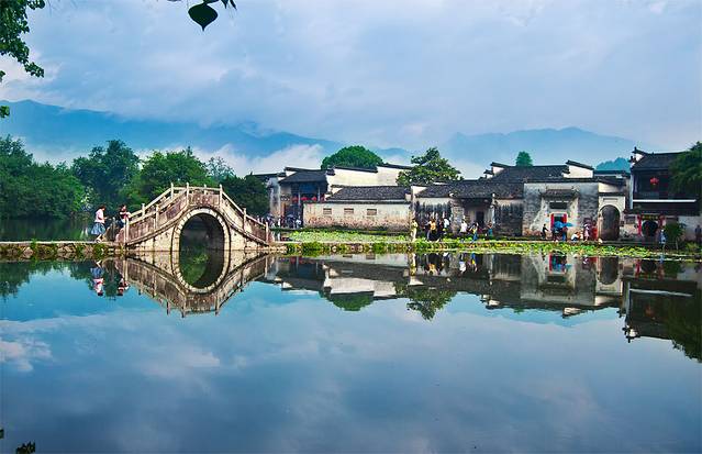 10年前我在宏村住了3天,双脚丈量了宏村的每一处古巷古宅,今年陪女儿再来发现南湖边的树长高了,遮挡着镜头,不方便拍摄对面的村庄了。画桥仍然如精灵般立于南湖之中,年复一年迎接无数游人穿梭而至。