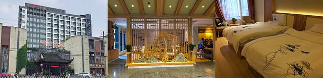 一小时到达屯溪客运站, 入住了距离屯溪老街不远的蝶尚酒店,高档型酒店,门脸和大堂用了徽州古建筑的元素和构件,比较有设计感,但房间很一般。