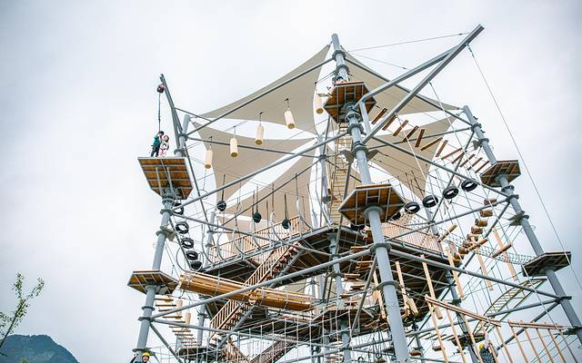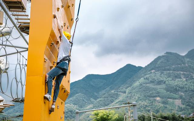 如果你胆子够大,还可以亲自来体验一番“岩壁上的芭蕾”—极限攀岩。调整呼吸,攀上高峰!背靠山林竹海,想想都是满心的舒爽与自在。