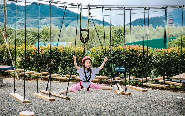 值得一提的是,这里也有一项低空蹦极体验,“一生一定要蹦一次极”的欲望一定要来实现一次,全程佩戴安全吊带让你安全着陆。