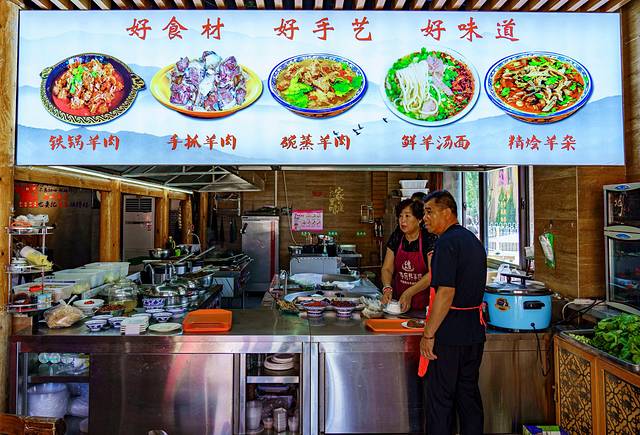 提起宁夏美食,一定避不开的就是羊肉,宁夏羊以膻味小、肉质嫩、口感好而闻名,“吃羊”也是属于来宁夏旅游必打卡的项目。而就在镇北堡西部影视城的斜对面,便有一家在当地很有名气的羊肉馆【穆府鲜羊城】,这一次我们一群人也是慕名而来,加上刚好在景点旁边也方便。