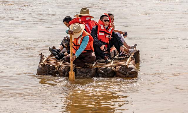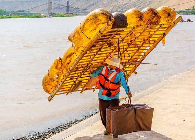 羊皮筏子是黄河上的特殊交通工具,别看几个羊皮扎成的皮囊,却能承受一吨的重量,引人称奇。坐在上面也是非常平稳,船工还会唱黄河民谣给你听,绝对是让人难忘的美好体验。