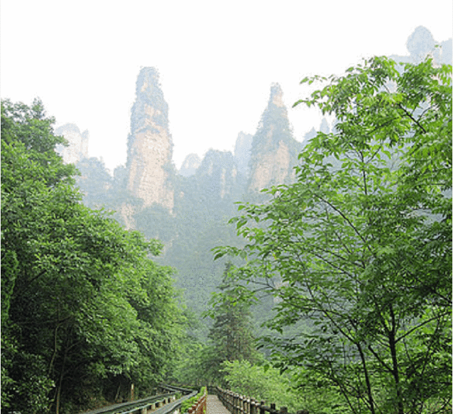 D1张家界国家森林公园进--到喜迎门走鹞子寨游览线(标准石级游路)人少,旅游团不走--鹞鹰堡--威武门--留宾岩--玉兔望月--层岩涌塔--百应谷--指点江山--排山倒海--凌空惊魂--风景独好--点石论古--鹞月潭然后走金鞭溪后半段 前半段留到第三天走 这样不走回头路 然后在水绕四门坐免费电瓶车到十里画廊 三姐妹峰--采药老人等群峰层列,犹如梦幻仙境 十里画廊坐单程小火车(30/人)听讲解 步行回来再拍照 游览完毕坐电瓶车至武陵源出景区 住武陵源