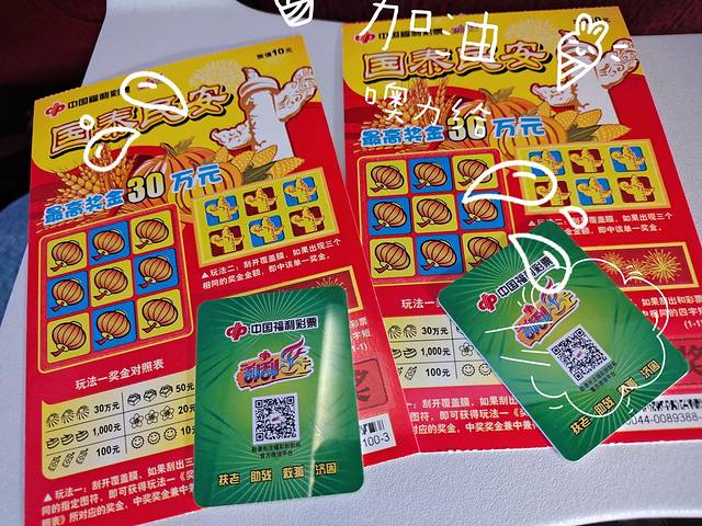第一次遇到飞机上买彩票,一人一张,花了20,中了10块
