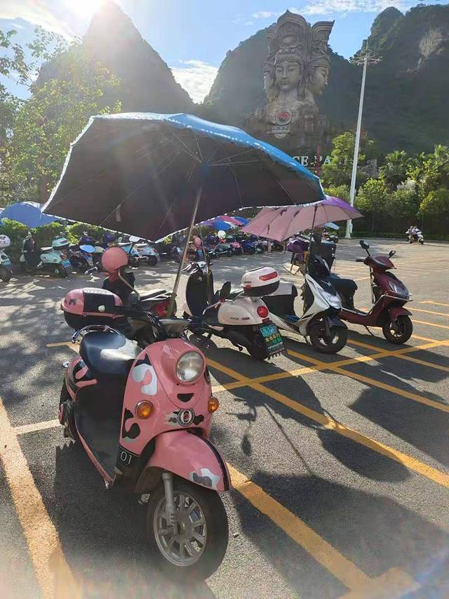 35元/天,晚上九点还车。因为要看桂林千古情时间有点赶,所以跟租车大姐商量了一下十点还车。在大连除了外卖小哥,几乎没有人骑电动车,所以我也不知道到底会不会。因为自行车我会骑,所以试了试,结果轻松掌握,给租车大姐吓坏了。