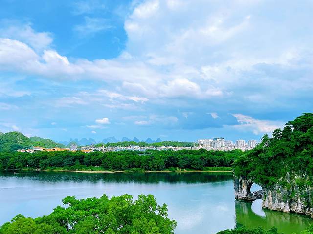 桂林市区内没什么大的景点,主要代表就是象鼻山。有两种方式可以看到象鼻山:一种是进入象鼻山公园,门票是50/人,还有一种就是象鼻山对面的餐厅,可以在餐饮阳台上俯瞰象鼻山。我们选择的是第二种方式。