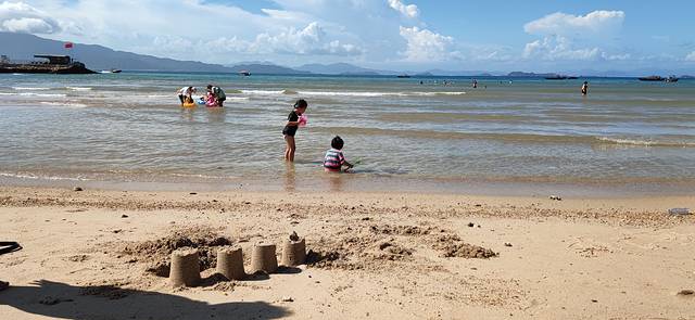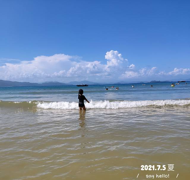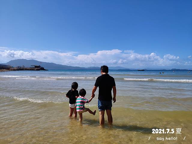 两个孩子一会儿赶浪,一会儿堆沙堡,玩得很开心。下快艇后跟着人群中,或者问下码头工作人员就知道沙滩在哪儿了。进去还以为要买门票,结果是免费的,海滨沙滩在门口写着收费但是门敞开也没有售票员,我们就大拉拉进去了。