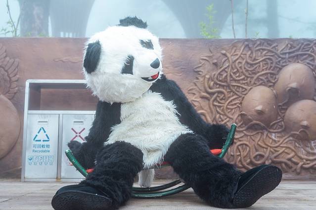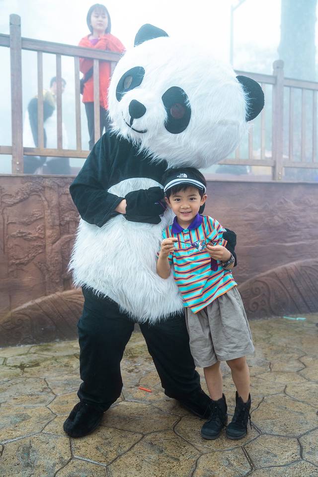 我们互相打气往前行进,终于看见了这些影子的真身,原来是一群可爱的“熊猫”在欢迎八方来客。