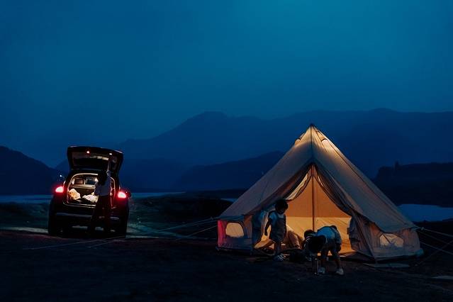 觉得麻烦的朋友,也可以租用这里的帐篷体验,在露营地100米的街头有各种美食,满足我们的味蕾。