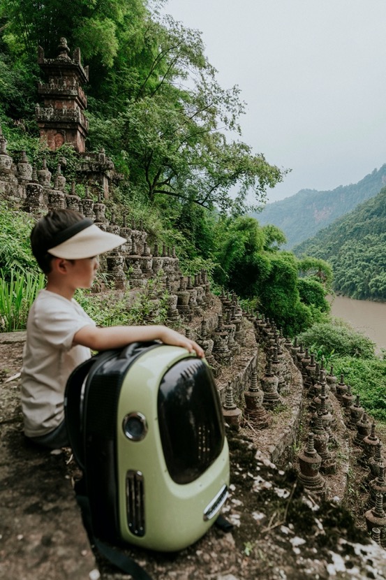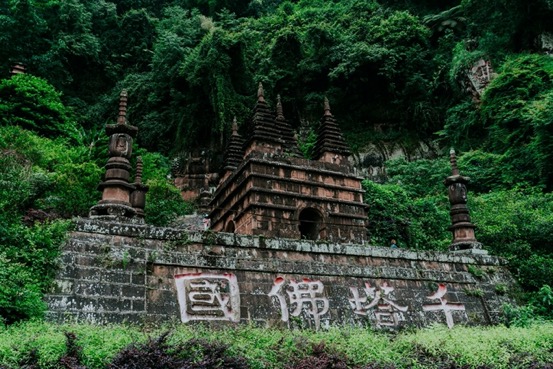 除了10元的停车费,槽渔滩是免费的。越往深处走,越能感受到这里奇峰陡耸,茂林修竹,晨钟暮鼓,仙风佛韵,峡江两岸丛生着数百亩侏罗纪时代的恐龙食物桫椤,而在这些桫椤林中还隐藏着108座形状各异的红砂石佛塔,居然有吴哥窟的影子。