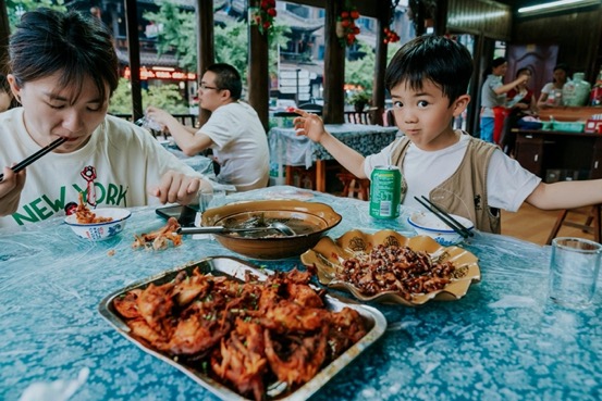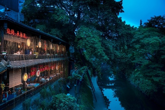 一座座古朴的木板房、吊脚楼临壁而立,与盘根错枝的黄葛古树、茂密旺盛的竹林、布满绿苔的石阶,组成一幅古朴宁静的生活画卷。
