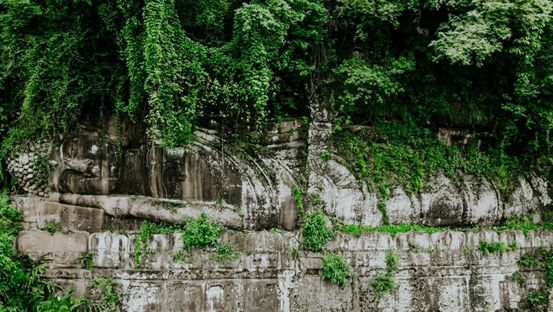 它们如同散落在密林中的佛国修者,遗世孑立,静默虔诚,拱卫着山崖间一尊巨型卧佛。