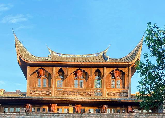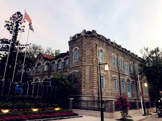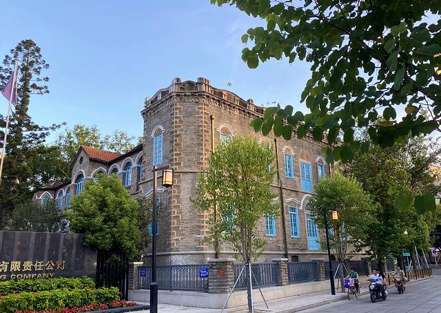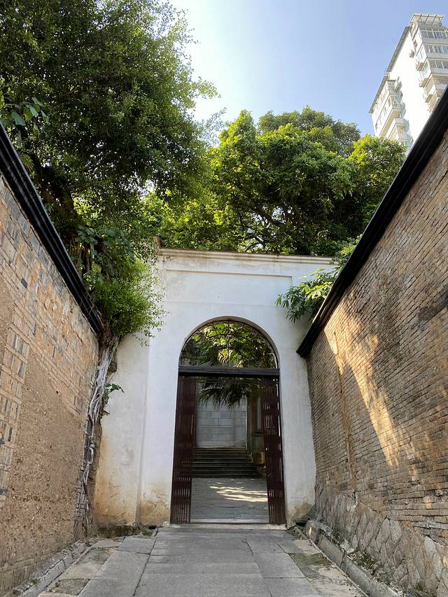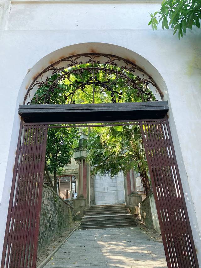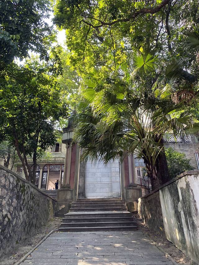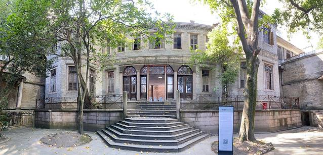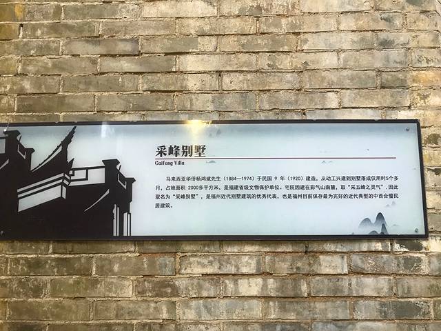 采峰别墅,福州近代别墅建筑的优秀代表,福州目前保存最为完好的、近代中西合璧民居建筑之一,由马来西亚爱国侨领杨鸿斌建于1920年。别墅门口的大树已经参天,浓荫蔽日。