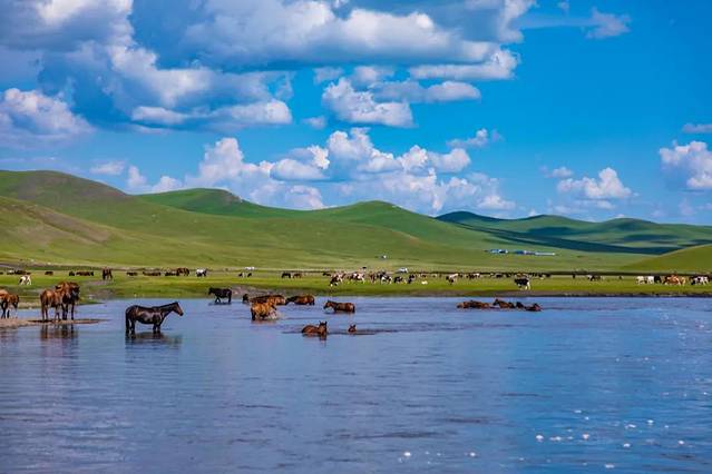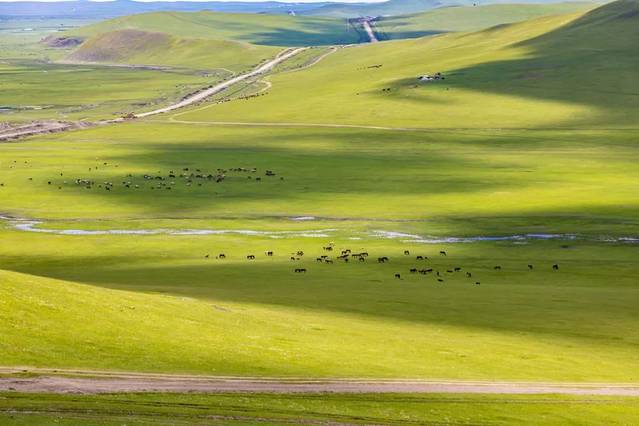 上学时,一句“天苍苍,野茫茫,风吹草低见牛羊”,轻而易举地在我脑海中勾勒出了一幅草原上的如画美景。那时小小的心房就种下了一个愿望,长大了一定要去大草原上走走,听牛羊咩哞,看马儿疾驰,住蒙古包里,早起挤牛奶,日暮看夕阳,这样的美好只是想想都觉得温暖!