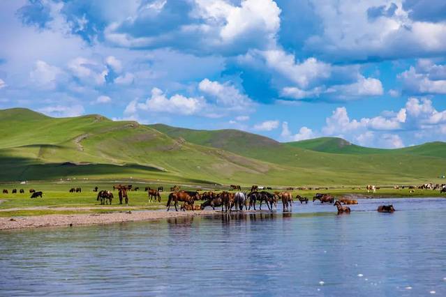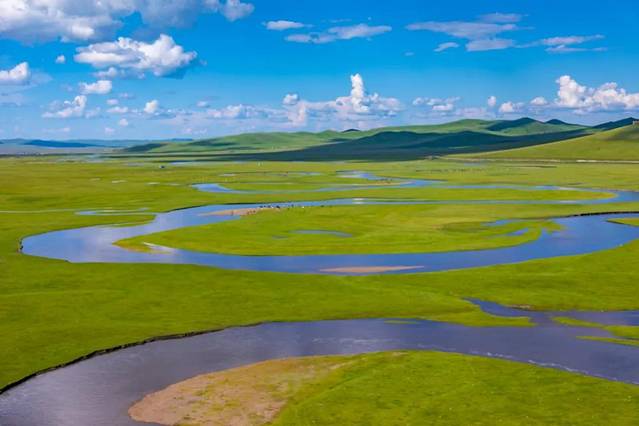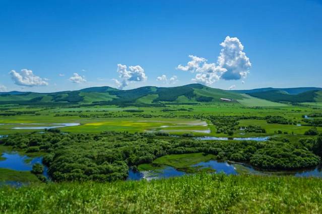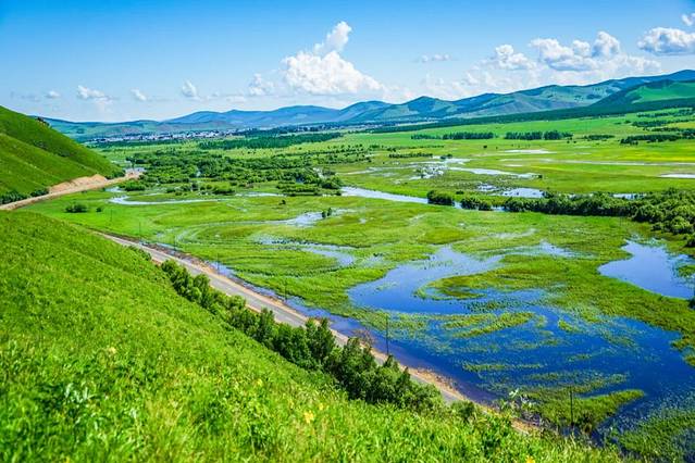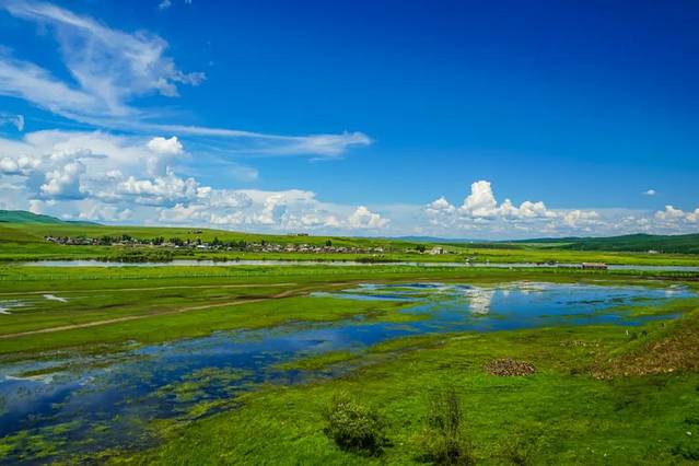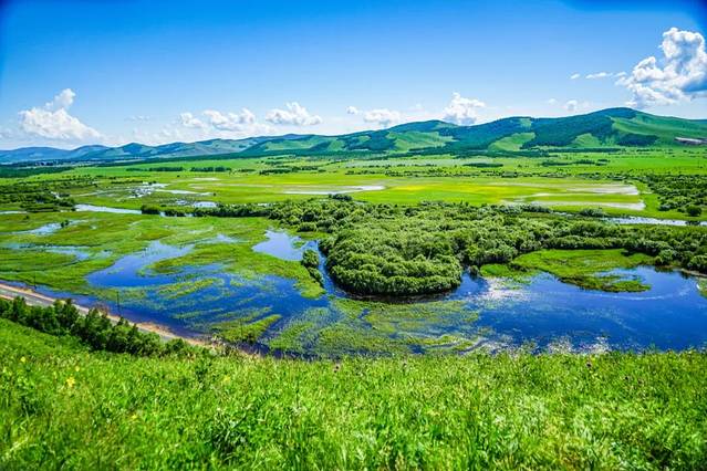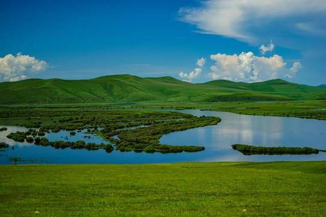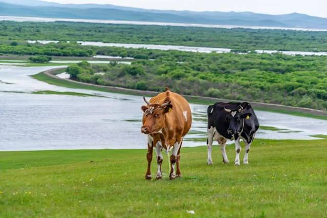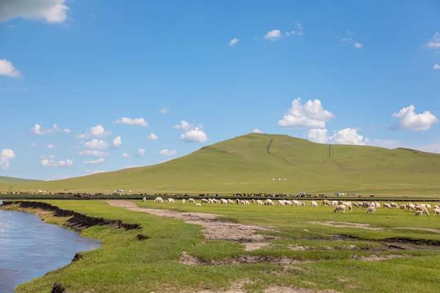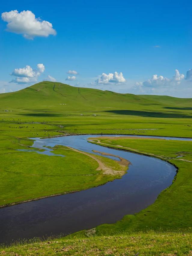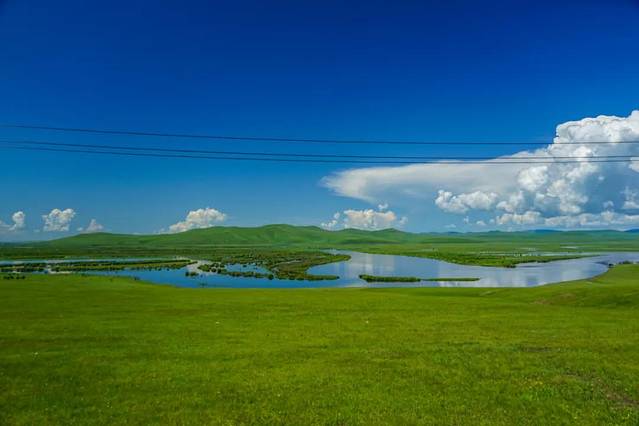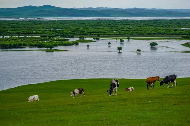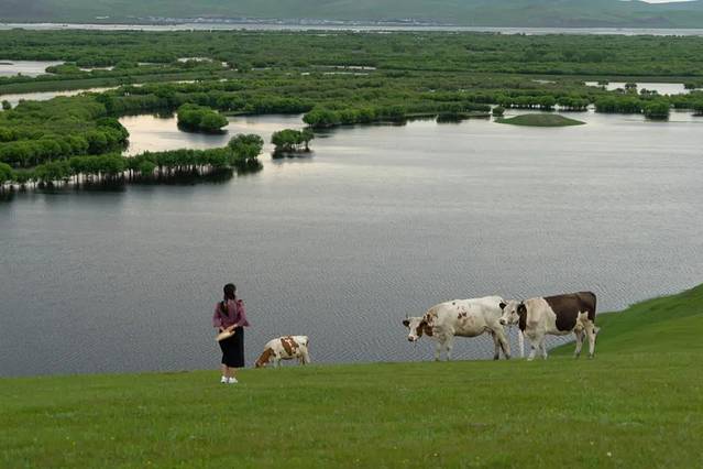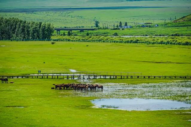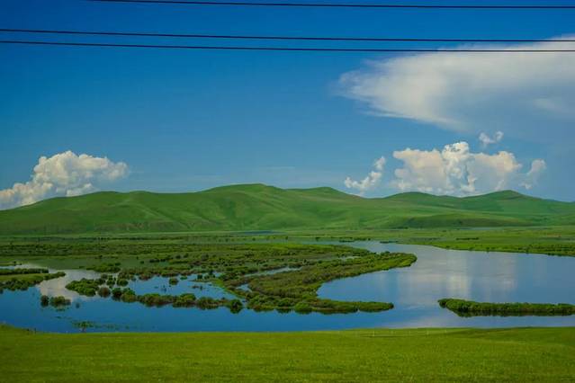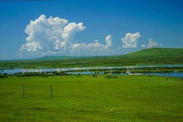 从哈乌尔河湿地驶离,一路上风景如画,开阔的苍茫草原、绵延不断的葱茏绿意、安闲自得牛羊马群,蓝天白云投影在河面,除了耳畔的风,世界美好得不容被打搅!